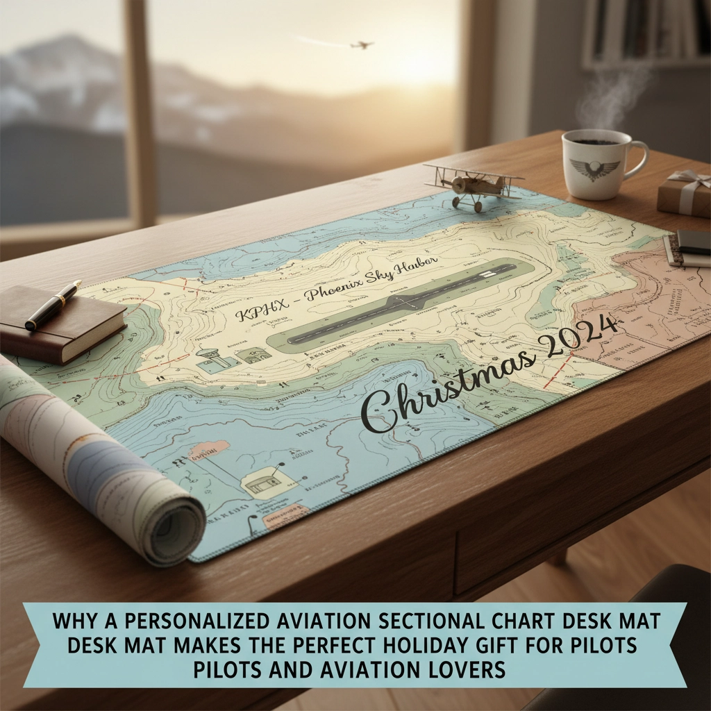 Finding the perfect holiday gift for the pilot or aviation enthusiast in your life can feel like navigating through turbulence. You want something meaningful, practical, and uniquely tailored to their passion for flight. A personalized aviation sectional chart desk mat checks all these boxes and more.