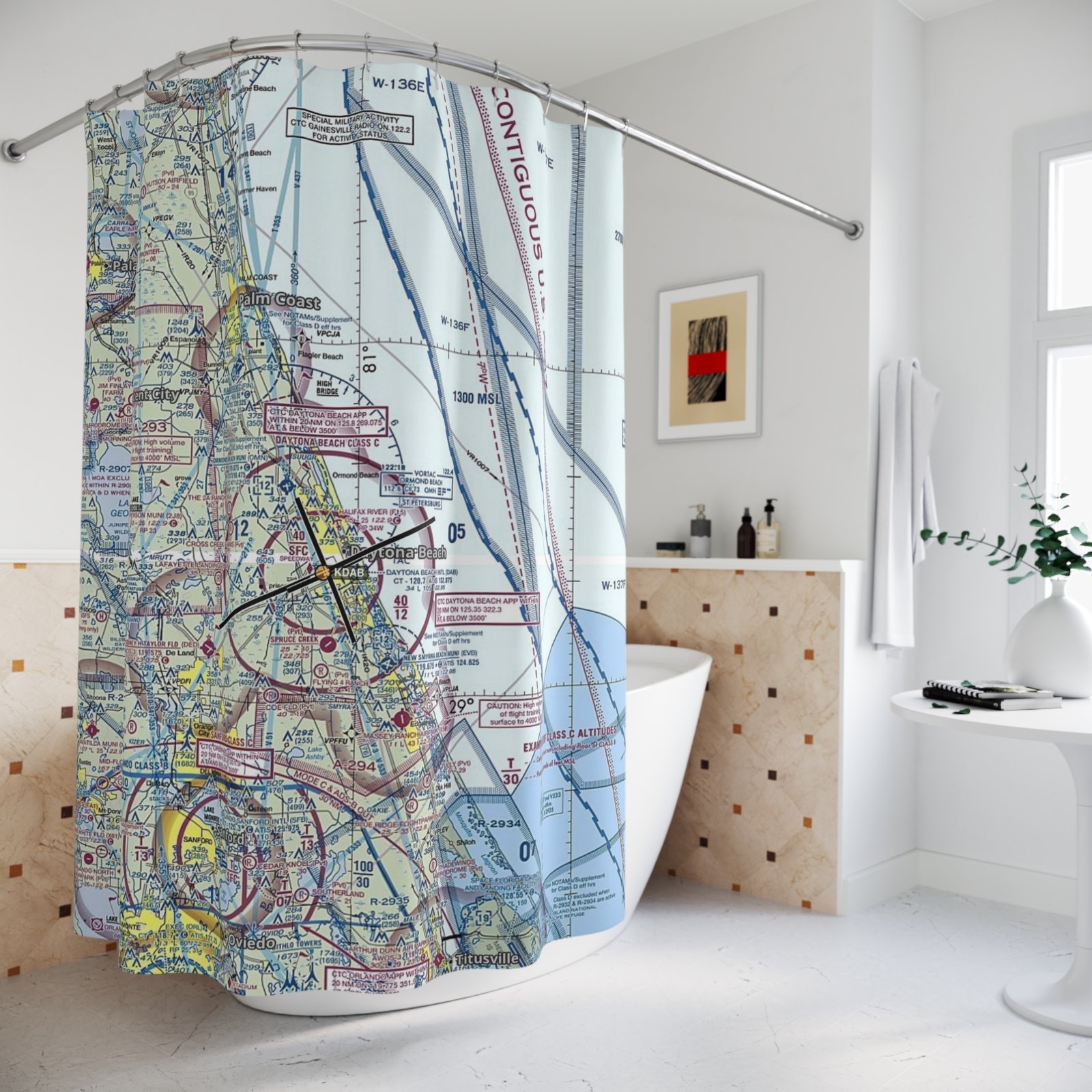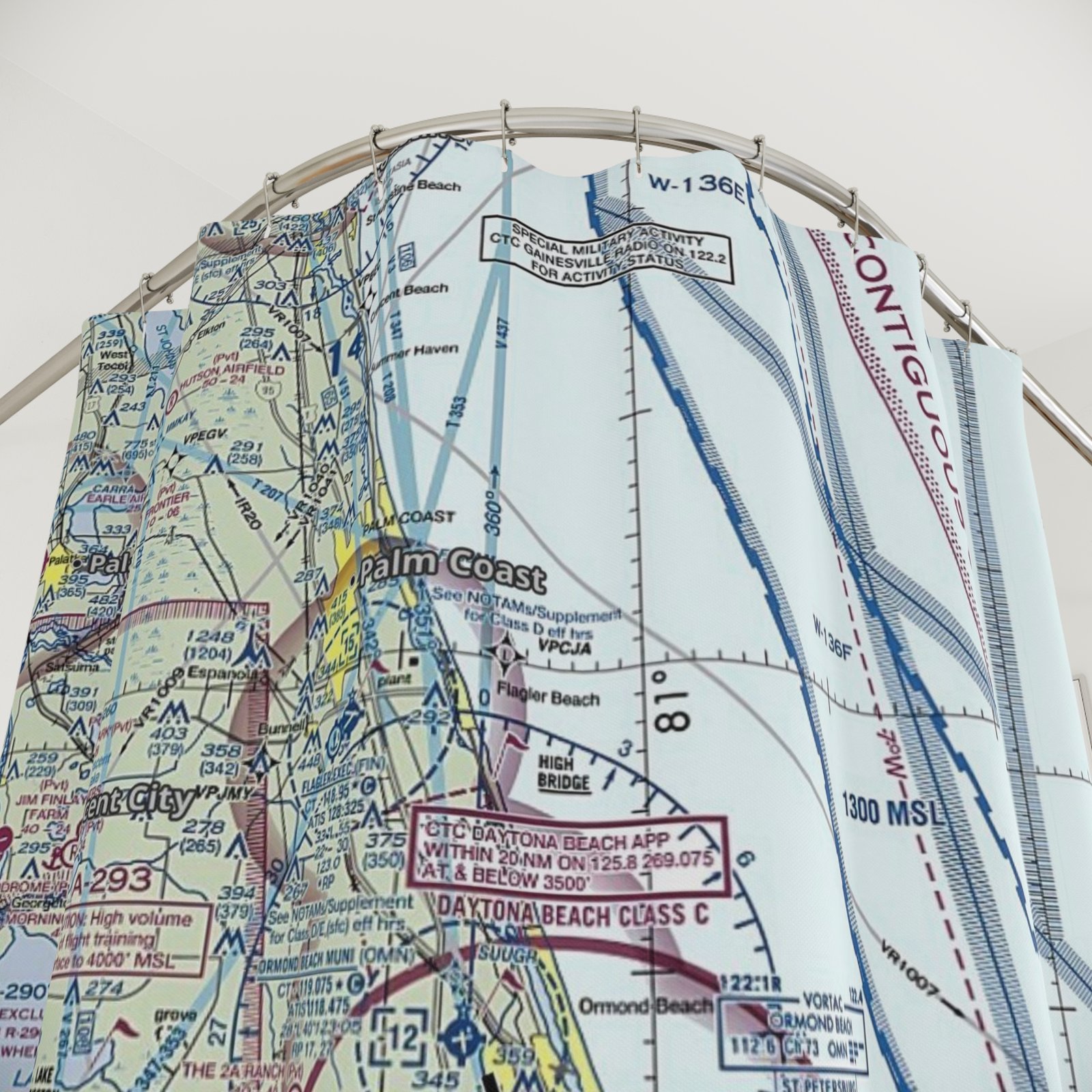 Aviation Sectional Chart Shower Curtain – Aviation Decor Bathroom Accessory – Pilot Gift Idea – Aviation School Gift